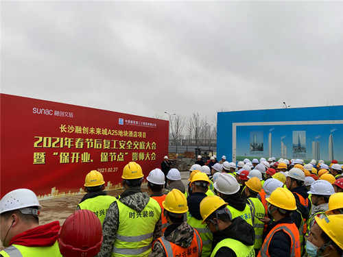 近日,為確保長沙融創酒店項目復工工作安全、平穩進行,促進項目順利推行,確保酒店開業節點如期完成,中建二局華東公司長沙未來城A25項目攜手融創集團開展項目復工安全交底暨“保開業、保節點”誓師大會活動。