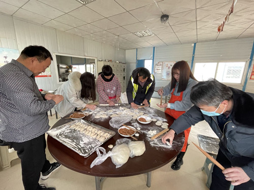 隨后,項目組織元宵聚餐,生產經理王頂代表項目班子向全體員工致以節日的問候,并致以良好的祝愿。大家齊聚一堂,現場充滿了歡聲笑語,洋溢著祥和喜慶的氣氛。在大家的歡聲笑語中,熱氣騰騰、象征團圓吉祥的湯圓出鍋了,大廚將煮好的湯圓和餃子送到大家的手中,大家一邊品嘗著美味的湯圓和餃子,一邊感受著節日的濃濃氛圍。