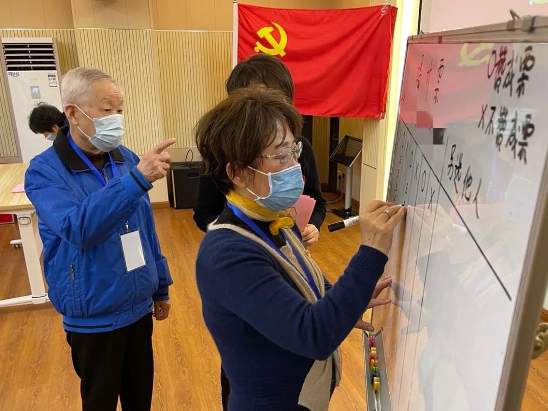 在宜川一村居委會,許多80多歲的黨員一早就抵達了選舉大會會場,“選舉是政治生活中的大事,作為老黨員,我們要投出自己重要的一票!”早晨10點,宜川一村第一居民區黨總支選舉大會完成各項議程,新一屆委員會召開了第一次全體會議,選舉出居民區黨總支書記,并確定了委員分工。新當選的書記周文捷對黨總支委員們提出希望,“我們要充分發揮黨總支的戰斗堡壘作用,凝聚好社區黨員的力量,為推動社區發展做出更多的貢獻!