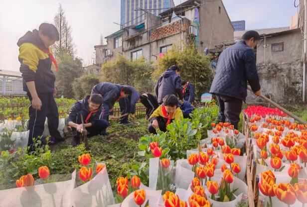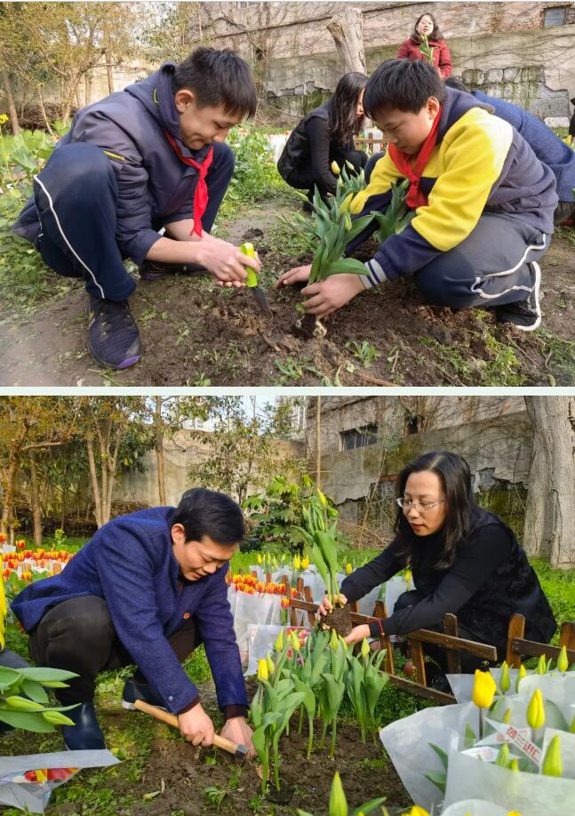 一同在校內種植郁金香