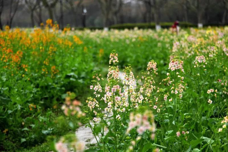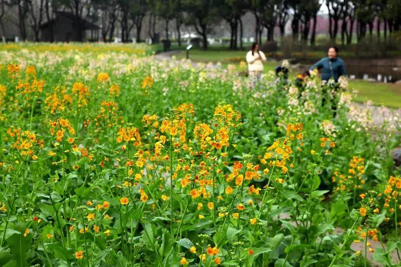 除了油菜花,還有紫玉蘭、櫻花、紅葉李、美人梅等各色春花,在世紀公園上演著“群芳怒放遮不住,姹紫嫣紅總是春”。