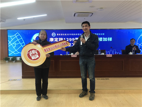 會上,曹家渡街道黨工委書記唐凌峰傳遞鑰匙并宣布康定路1299弄22、23號樓這兩棟電梯正式竣工啟用。秉承“拓荒!本,街道副主任王燕鋒部署了2021年加梯工作,并代表街道既有多層住宅加裝電梯領導工作小組與各居民區簽署了目標任務書,明確街道可結合實際情況為居民區制定加梯工作的意見征詢數、開工立項數等指標,居民區負責具體落實。據悉,街道今年另有3臺已立項開工,5臺即將開工。
