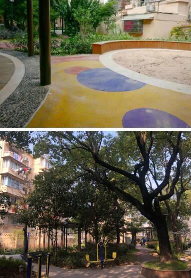 作為一個“老舊小區”,這里有不少“上了年紀”的大樹,早已成為一代居民的生活記憶。設計師梁潔對花園內的每一株大樹、每一塊活動場地都進行標注,在保護原有植被基礎上進行環境提升,并規劃兒童科普體驗小樹林,在社區形成寓教于樂的氛圍。