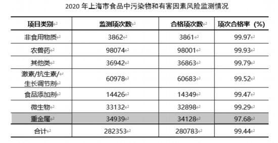 《2020年上海市食品安全狀況報告》顯示,上海各類食品評價性抽檢總體合格率為99.4%,同比上升1.3個百分點,為近15年來的最高水平,但海水蟹、海水蝦等海水產品的合格率較低,主要問題就是鎘污染。