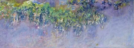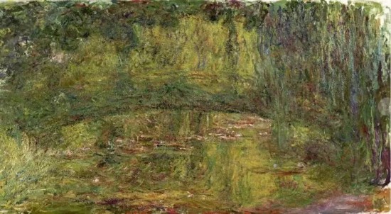 而莫奈最著名的《睡蓮》、《紫藤》和《日本橋》,則在最后一個展廳集中展出。1883年,43歲的莫奈搬到了吉維尼,并建造了一個花園,繪畫主題全部變成了花園。1903年,莫奈種下沿著拱形花橋攀爬的紫藤花,覆蓋住了臨水花園中的日本橋,后來他便開始創作超大幅作品,展出的長達3米的巨幅畫作《紫藤》就是為數不多的莫奈大裝飾作品!巴砟甑哪尾辉倬窒抻谟∠笈傻睦砟,繪畫地點、技法和題材都有所變化,風格更純熟!敝x定偉表示。