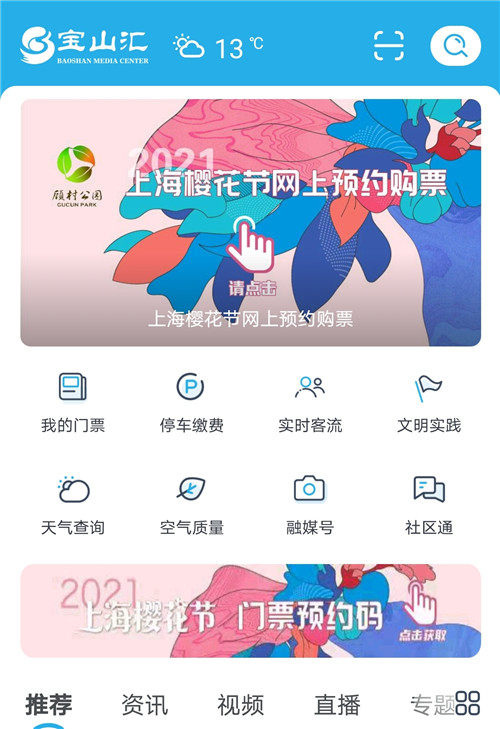 從顧村公園預約比例1:9,線上預約僅占10%,到今年櫻花節首個周末客流量20萬,通過“寶山匯”APP線上預約量為5萬多,占比超過了25%。在城市數字化轉型中,寶山融媒認為,為民服務就是“讓數據多走路、讓群眾少跑腿”,通過大數據、云計算等智能化的手段,不斷拓寬融媒便民“服務圈”,為老百姓解決實際問題,助力寶山“打造上?苿撝行闹麝嚨亍。