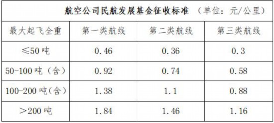 調整后的航空公司民航發展基金征收標準。制表:王震