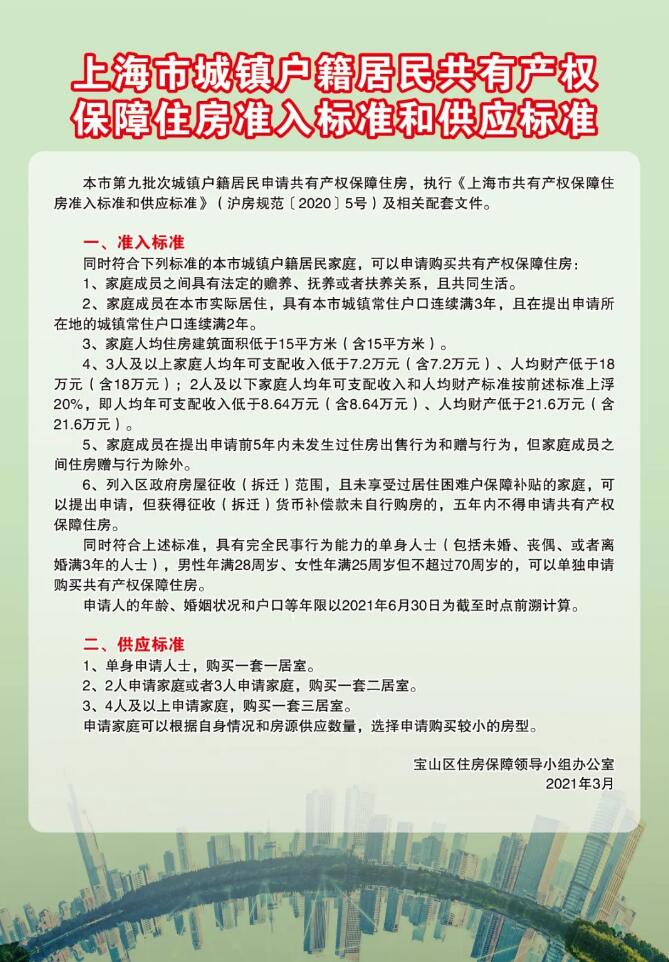 寶山區本市戶籍第九批次和非滬籍第三批次共有產權保障住房的申請受理工作即將在全市范圍內率先啟動啦!