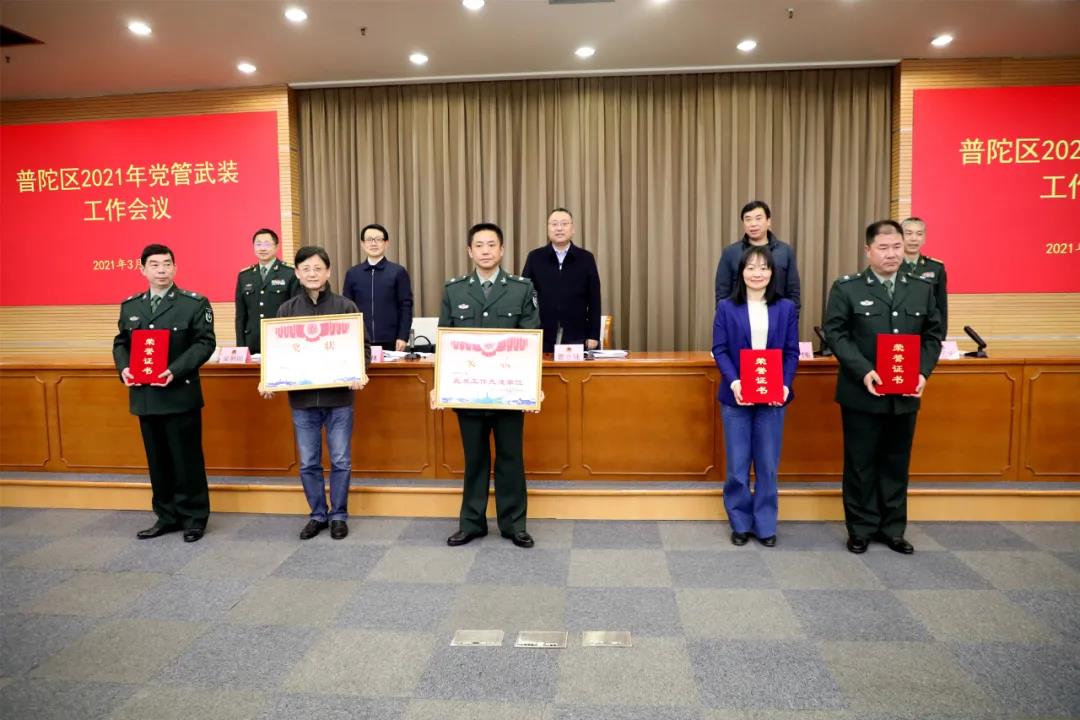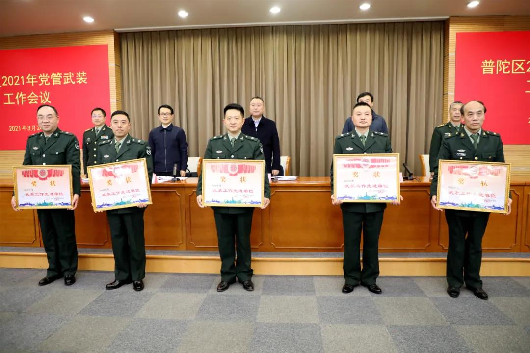會上,區領導為獲得2020年武裝工作表彰的代表頒獎;宜川路街道、甘泉路街道、石泉路街道武裝部黨(工)委書記就黨管武裝工作作了述職交流。