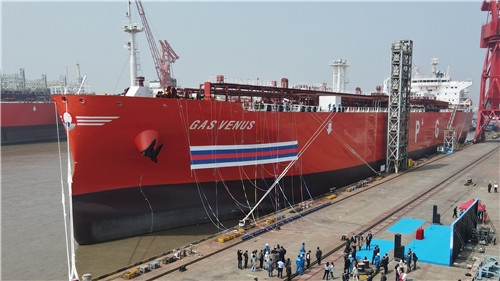 人民網上海3月28日電(葛俊。 3月28日上午,中國船舶集團旗下江南造船為西南海運建造的全球首艘新造86000立方米超大型雙燃料液化石油氣船(VLGC)正式命名為“GAS VENUS”。這標志著以江南造船為代表的中國造船業持續領跑全球液化氣船市場。