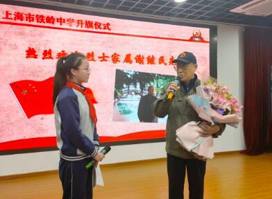 活動中,謝晉元之子謝繼民先生來到了現場做國旗下講話,為同學們講述其父親和四行保衛戰背后的故事。