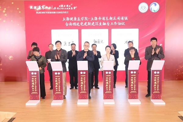 人民網上海4月1日電 聚焦“學黨史、悟思想、辦實事、開新局”12字下真功夫,近日,上海健康醫學院黨委與周浦鎮黨委舉行區域化黨建深度融合發展簽約儀式,上海市教衛工作黨委書記沈煒,浦東新區教育工作黨委書記、浦東新區教育局局長諸惠華、浦東新區組織部副部長徐可畏出席儀式。