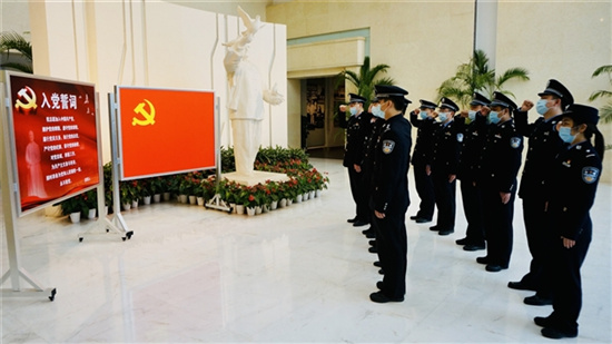 在祭掃活動中,全體人員莊嚴肅穆,默哀致敬,并向革命烈士敬獻了鮮花,表達對烈士的崇高敬意和深切悼念之情。隨后,全體黨員民警們重溫入黨誓詞、團員民警們重溫入團誓詞,要求大家牢記身份,做到不忘初心、牢記使命,永跟黨走的堅定理想和莊嚴承諾。