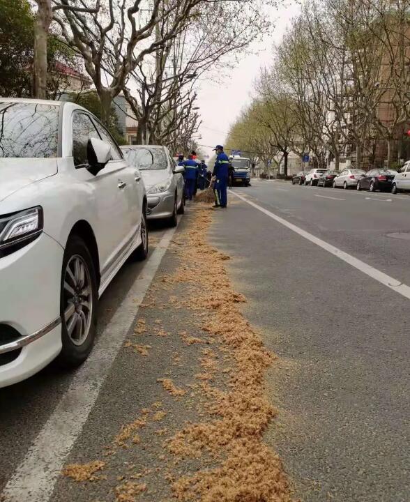 隨后,綠化管理部門加強觀察多次嘗試,3月26日選擇在果球微微開裂較為蓬松,略有新葉舒展并且新花序外苞片脫落的時候進行了沖洗,此次效果明顯,果毛持續大量飛落達到了預期的效果,便決定全面安排各重點路段養護公司開展沖刷工作。