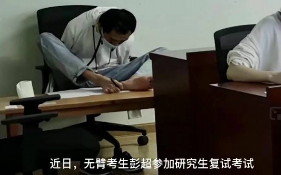 東方網記者傅文婧4月7日報道:他的雙腳如雙手般靈活,他的意志比常人更堅韌。四川“無臂男孩”彭超的勵志成長故事,從很多年前就感動了無數人。4月6日,彭超考研成功即將入讀同濟大學的消息再度引發關注,網友紛紛向他送去了祝福與敬意。