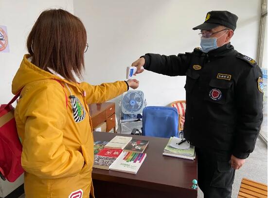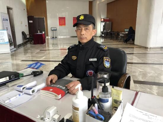 在上海大學錢偉長圖書館明亮的一樓大堂,有一位戴著眼鏡的保安師傅正襟危坐,認真關注著往來的師生,大廳里的動向,并為進入圖書館的老師同學們進行測溫登記。這位保安師傅的手邊放著一本書——定睛一看,是《社會契約論》。