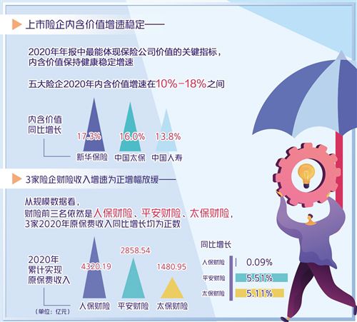 截至目前,A股5家保險上市公司已經悉數披露2020年年報。數據顯示,2020年上市險企累計實現原保險保費收入2.49萬億元,同比增長3.65%,占比超過全行業一半。經歷了2020年的新冠肺炎疫情,能保持如此業績,實屬不易。