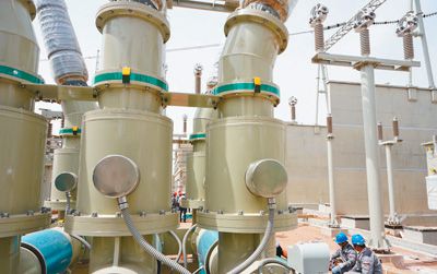 2019年5月8日,工人在張北可再生能源柔性直流電網康保換流站施工。