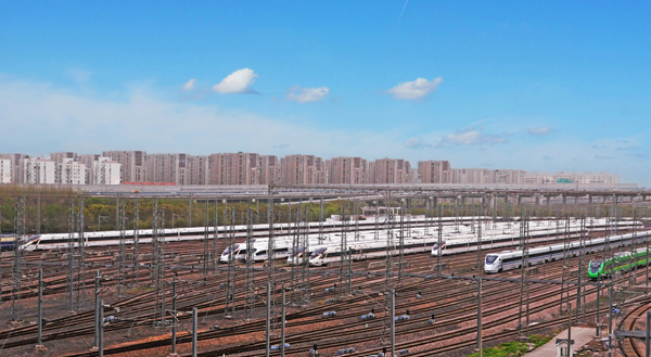 虹橋動車運用所存車線一瞥。鐵路部門供圖