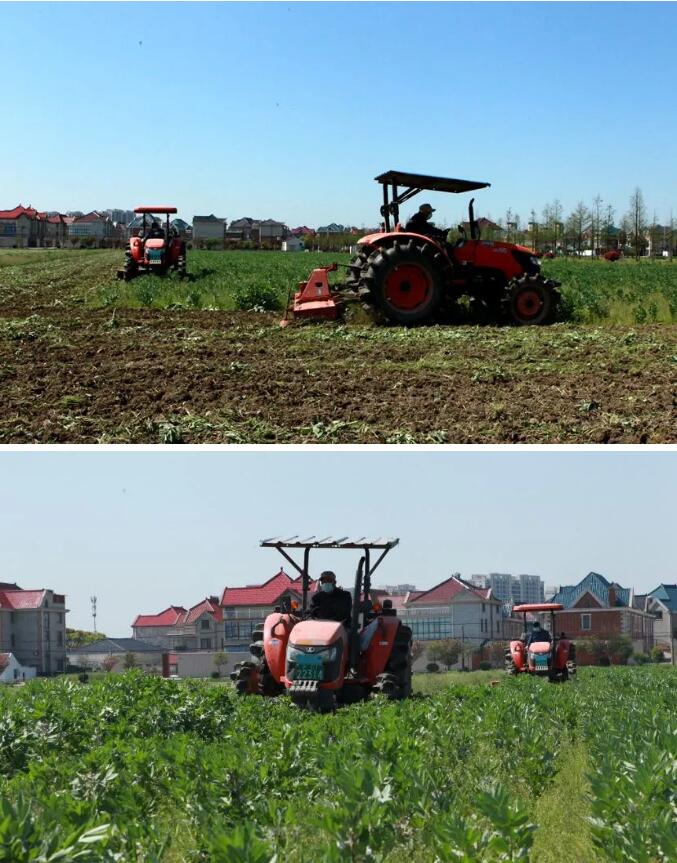在羅涇鎮花紅村,幾輛拖拉機正在對地里的油菜花、蠶豆進行粉碎還田。負責人介紹說,這些農作物能增加土地有機質含量,是農業生產的好幫手。等過一陣,土地再進行翻耕后,就能變成作栽種水稻的底肥,到時水稻就能種起來了。