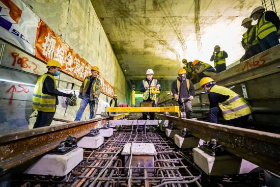 據申通地鐵集團,3月31日上午,在位于18號線江浦路站地下站臺處,全線最后一節鋼軌鋪設順利完成,標志上海軌道交通18號線一期北段軌道工程實現全線貫通。
