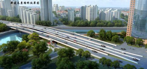 此次工程為長壽路跨蘇州河中幅橋重建,橋梁長度240m,橋梁寬度16m,橋梁面積3840㎡。工程以適應蘇州河北部地區發展為切入點,以構建中心城北部東西向客運交通走廊,滿足城市東西主軸方向的發展需要。