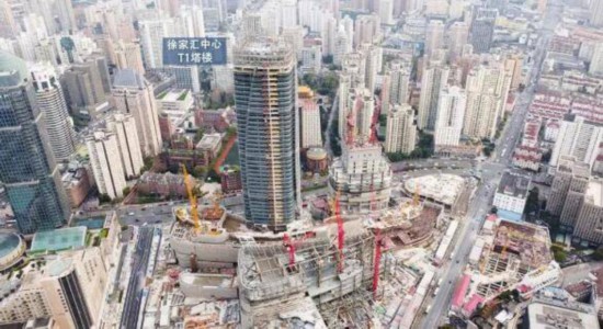 徐家匯中心T1塔樓完成塔冠鋼結構施工