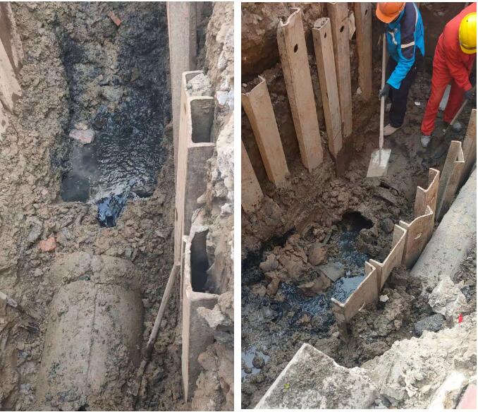 近日,在接到人大提案后,張廟街道社管辦委托專業管道檢測單位查找塌陷原因,檢查后發現原來是地下2米多深的直徑80CM的污水管嚴重破損導致滲漏,造成了路面塌陷。