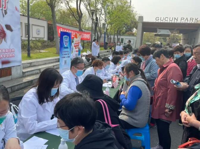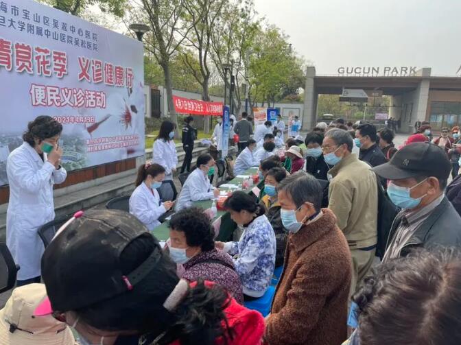 4月13日一早,復旦大學附屬中山醫院吳淞醫院與顧村鎮菊泉新城社區衛生服務中心的醫生專家在顧村公園聯合開展“踏青賞花季,義診健康行”,為顧村周邊的百姓送上健康。