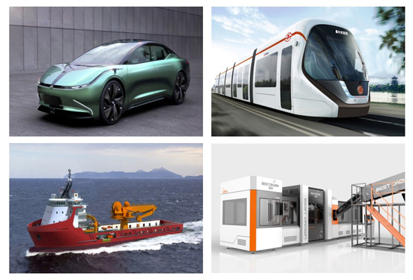 賦能產業——酷炫溜背的轎跑、充滿黑科技的飛行器、高性能的柔性流水線,個個有顏有質,設計正闡述著中國制造實力與顏值的完美融合。