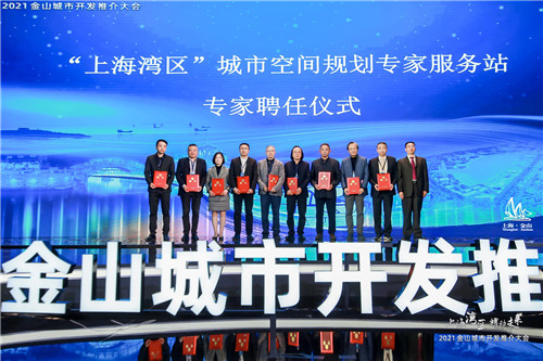 同時,現場舉行“上海灣區”城市空間規劃專家服務站揭牌和專家受聘儀式。中國工程院院士、德國工程科學院院士、同濟大學原副校長吳志強,中國科學院院士、上海交通大學黨委常委、副校長毛軍發,上海師范大學校長、上海市電子學會副理事長朱自強,上海市人民政府參事、同濟大學建筑與城市規劃學院教授唐子來,華建集團華東建筑設計研究總院院長、黨委副書記、總建筑師張俊杰等20位專家受聘“上海灣區”城市空間規劃專家,專家們的學術背景涵蓋科技與產業發展、城鄉規劃和設計、城市交通、區域發展、生態環境、景觀園林、文化旅游等,未來將深度參與金山城市發展和規劃設計工作,為“上海灣區”重塑城市空間格局獻計出力。