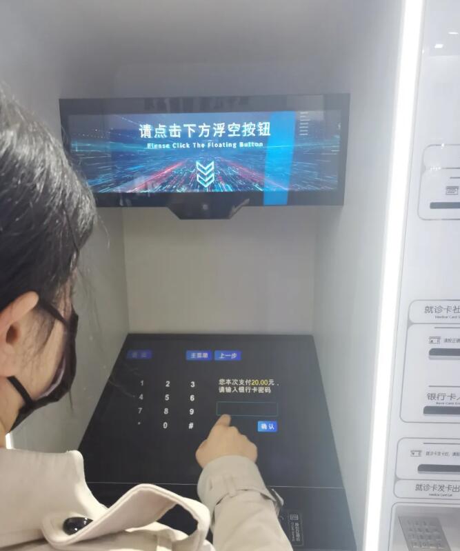 在安徽省展臺,一名觀眾似乎正“隔空操作”著一臺ATM機,湊近一看,原來是一臺未來感十足的“無觸摸醫療自助機”——顧名思義,它沒有實體屏幕,對著“空氣圖標”摁按鈕,就能完成模擬的預約、掛號、付費、打印等事項。東超科技自主研發了新材料負折射平板透鏡,可以將整個屏幕懸浮在空中,不接觸任何的實物的情況下,完成對應的操作。該設備的核心技術是“可交互空中成像技術”,整臺無觸摸醫療自助機則是在2020年疫情嚴峻時候“臨危受命”,短時間內在安徽省內應用推廣的。