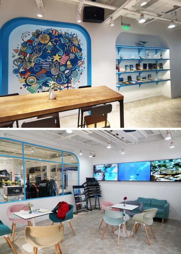 場館內藍色的地中海風格讓人眼前一亮,仿佛清新的海風撲面而來。這里擁有上海唯一10米深水池及6米池,1.2米淺水區和3米及5米水下平臺。
