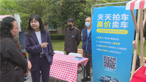 活動現場,“天天拍車”二手車在線拍賣平臺也受邀進入社區進行推廣,并為中環花園居民打造了專屬的線上入口,通過加快信息對接,來滿足來居民的相關需求。