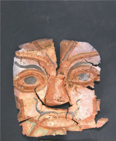 西藏札達桑達隆果墓地出土的銀質鎏金面飾。