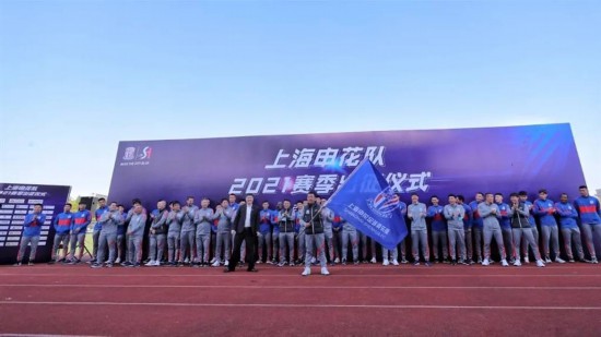 儀式最后,吳曉暉向主教練崔康熙授予申花俱樂部隊旗,同時申花康橋訓練基地也升起申花俱樂部隊旗。在現場數百位球迷整齊劃一的助威歌聲中,活動再次達到高潮。