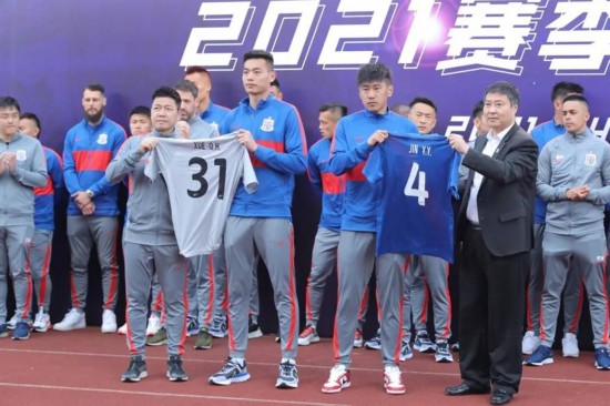 申花俱樂部董事長吳曉暉、總經理周軍為新援金洋洋和薛慶浩頒發申花球衣,新賽季金洋洋、薛慶浩將分別身披4號、31號球衣征戰。隨后,除了因為全運比賽任務缺席的何龍海外,吳曦、約尼奇、阿德里安、巴索戈、金洋洋、王毅、薛慶浩等七位2021賽季新加盟的球員悉數登臺亮相。