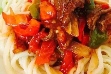 新疆拉條子口碑好,知名度高,聞名全國,澆頭配上羊肉,辣椒等,吃起來幸福感十足。