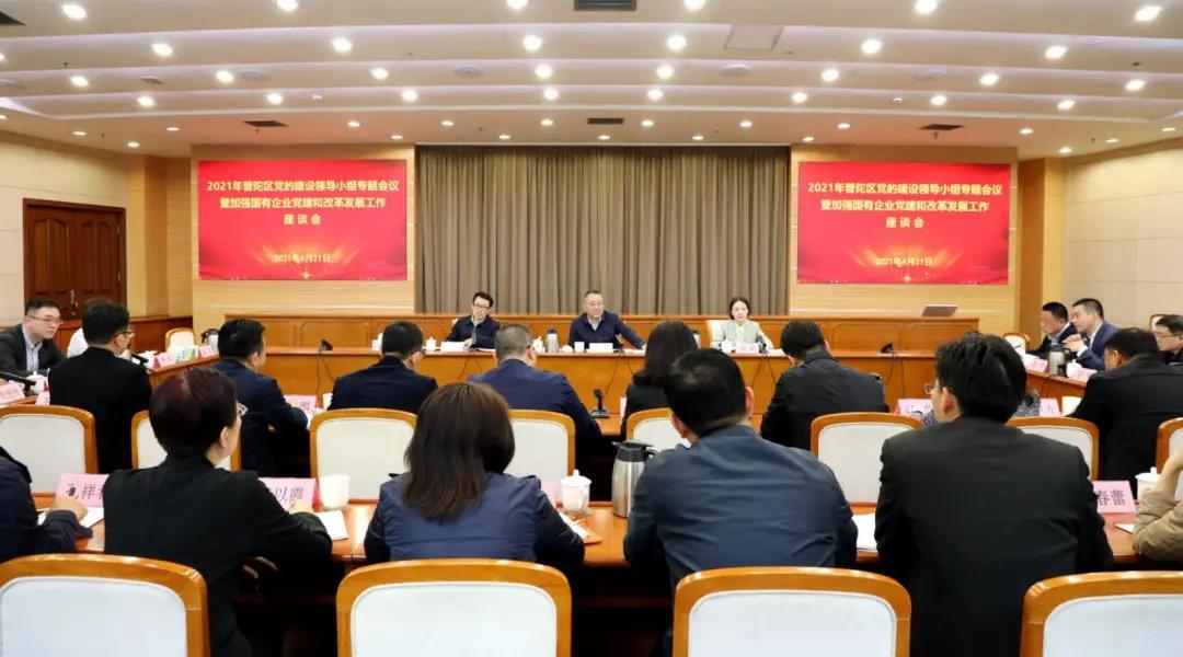 4月21日下午,2021年普陀區黨的建設領導小組專題會議暨加強國有企業黨建和改革發展工作座談會召開,貫徹落實黨中央、國務院和市委、市政府有關會議精神,全面部署區國企黨建和國資國企改革發展工作。區委書記曹立強在講話中強調,普陀國資國企要全面貫徹黨的十九屆五中全會和中央經濟工作會議精神,認真貫徹市委、區委關于深化國資國企改革的決策部署,更加注重高質量發展,更加注重提高核心競爭力,更加注重激發企業活力,更加注重有效監管,更加注重黨的建設,為“十四五”勝利開局作出應有貢獻。區委常委、組織部部長周艷傳達市國資國企黨建工作會議精神,區委常委、副區長姚汝林主持會議。