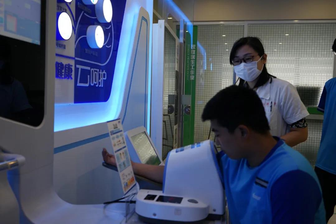 位于仇寶華家庭醫生工作室的戶外職工愛心接力站結合自身優勢,針對戶外職工的需求提供中醫藥服務、意外傷害急救處理。站點內設健康云檢測設備,可供戶外工作者們對身體健康進行自檢自測,志愿者醫生在旁科普健康知識的同時為他們答疑解惑。外賣送餐員張先生測量了血壓后跟身旁的醫生“討教”起來,“平時很忙沒時間跑醫院體檢,這里可以做一些基本檢查,還能來這里問問咨詢一下小的不舒服。這個愛心接力站不僅僅是一個遮風擋雨的休息的地方,它真的在我們有限的空閑時間提供了不小的幫助!