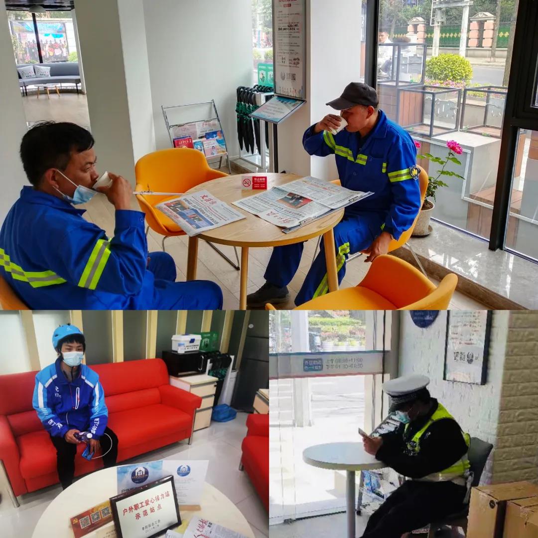 各行各業的戶外職工在愛心接力站休息