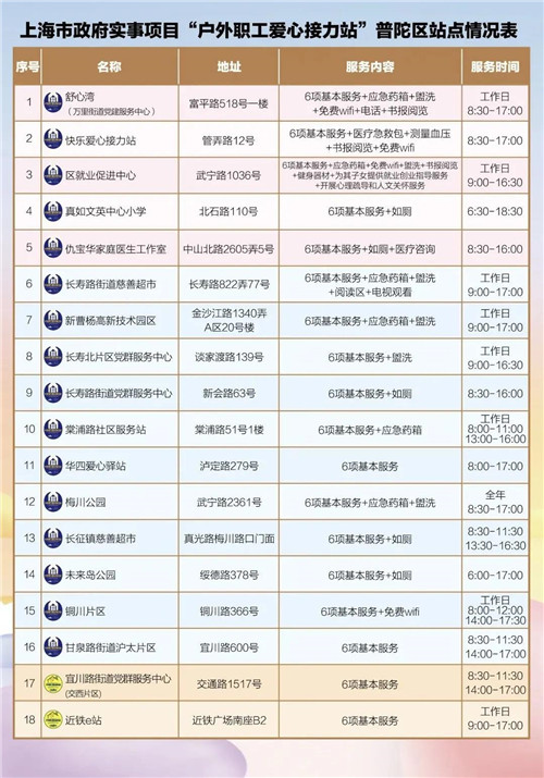 普陀區戶外職工愛心接力站分布詳情