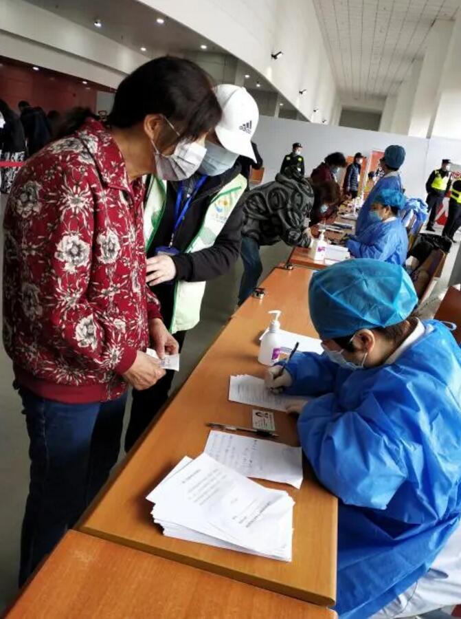 得知此情況,寶鋼四村志愿者馬上與其進行了對接,將卞阿姨送到接種現場。在接種現場,工作人員幫助卞阿姨錄入個人信息、填寫疫苗接種單,并且全程陪同卞阿姨順利地完成接種。
