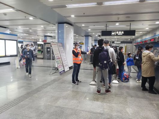 車站聯合軌交延吉所對安檢口鐵馬進行調整,工作日早晚高峰增派工作人員在擁堵點進行客流疏導,有效分散進站客流。