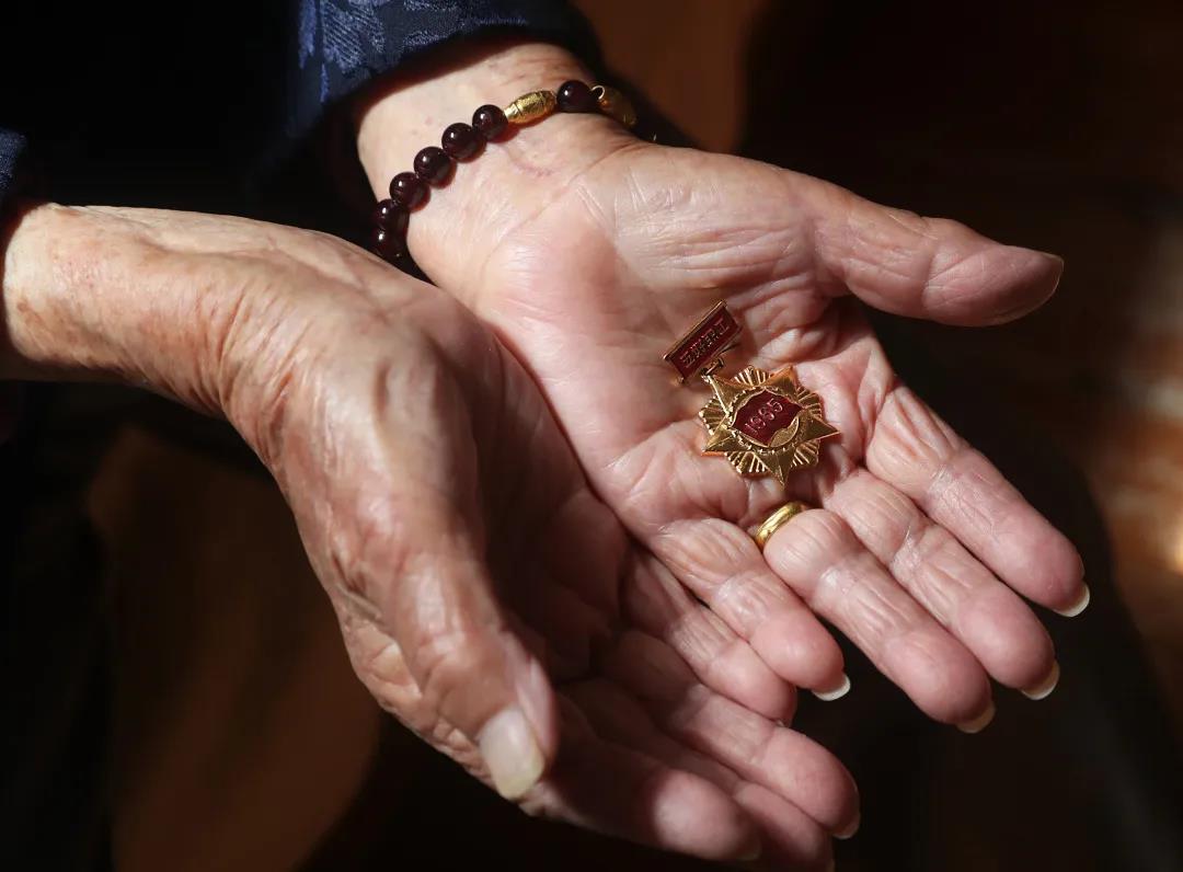 在王招娣為數不多的行李當中,一枚榮譽徽章占據了“一席之地”,它泛著微光,背面“1965”的字跡清晰可辨。