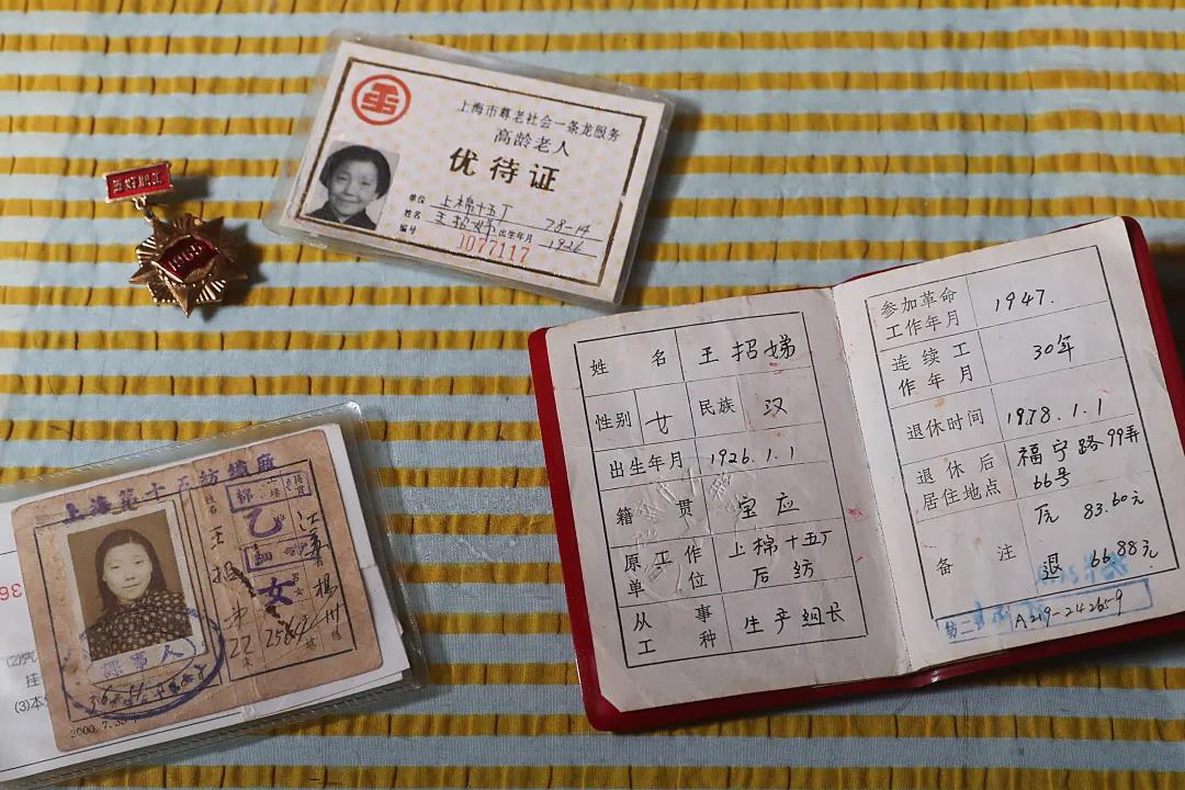原來,王招娣曾是國棉十五廠的紡織女工,還得到過“五好職工”的榮譽!斑@是整個小組的人看我工作做得好,大家共同選出來的!比缃,這枚見證驕傲年華、飽經時代滄桑的徽章成為了她的“珍藏”。
