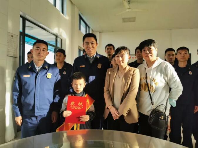 賀燕告訴記者:“我們只要一說到消防員、消防車就能打開他的“話匣子”,后來我們才知道他爺爺是一名退役的消防戰士,耳濡目染中他對消防員比較向往,我們就想帶他來參觀一下!
