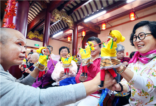 源于世界非遺福建漳州布袋木偶,因其表演細膩、栩栩如生,尤其是用五指操縱木偶進行的表演,是一種具有高超技藝、精美造型和獨特風格的木偶劇種。學習和培訓這門手腦并用的技藝,對預防老人失智失能不啻于一帖良藥。上海心晴社區服務發展中心的社工們手持西游記孫悟空造型的布袋木偶,向老人們積極推介和示范,不僅促進了手部鍛煉,同時也是世界非物質文化的浸潤和傳播。