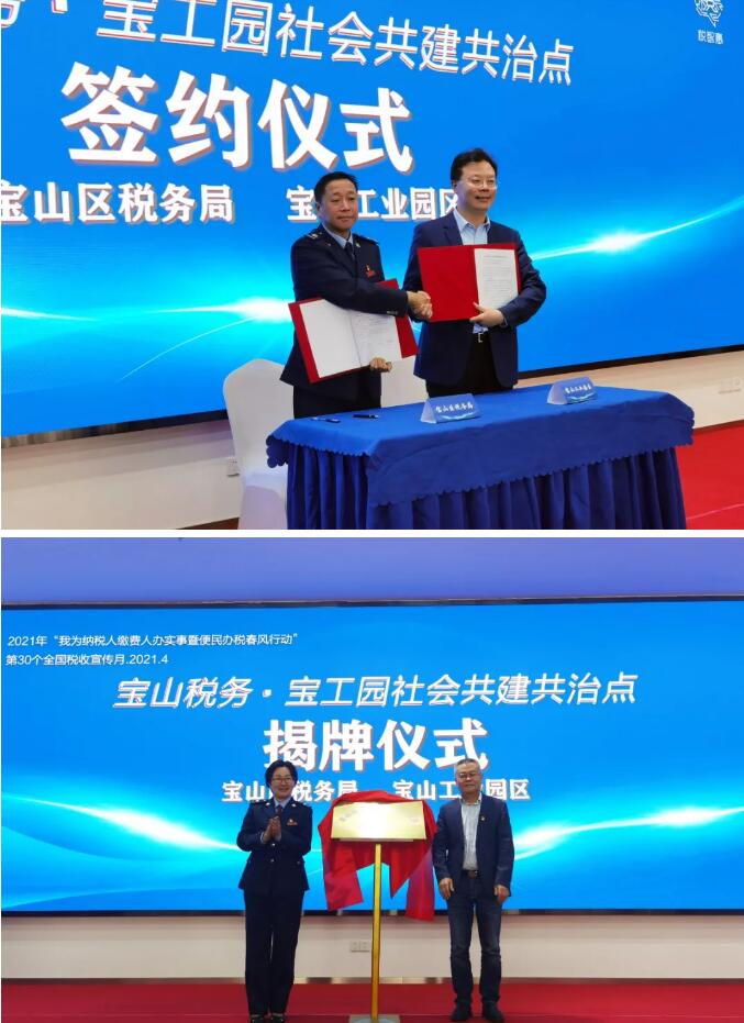 4月29日下午,國家稅務總局上海市寶山區稅務局“稅智惠”品牌旗下首個社會共建共治點啟動儀式在寶山工業園區舉行。