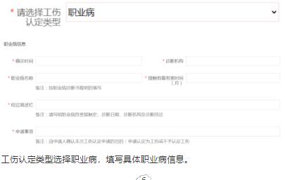 工傷認定類型選擇職業病,填寫具體職業病信息。